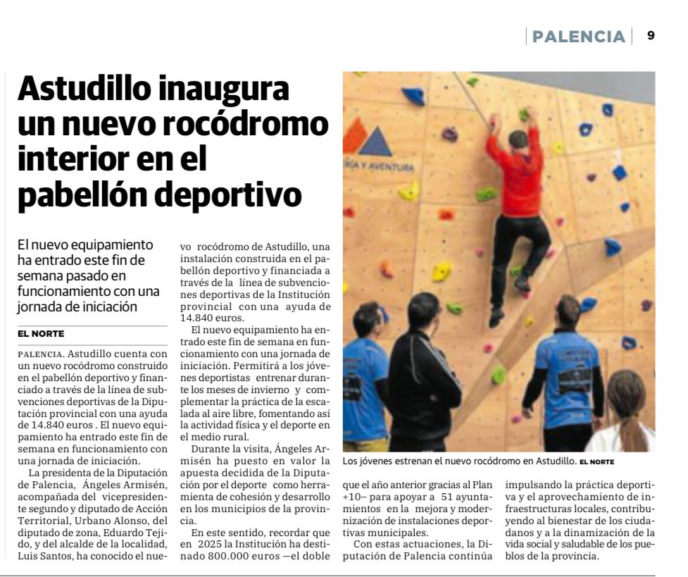 Astudillo inaugura un nuevo rocódromo interior en el pabellón deportivo tras una ayuda de 15.000 euros de la Diputación