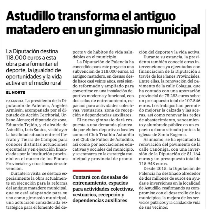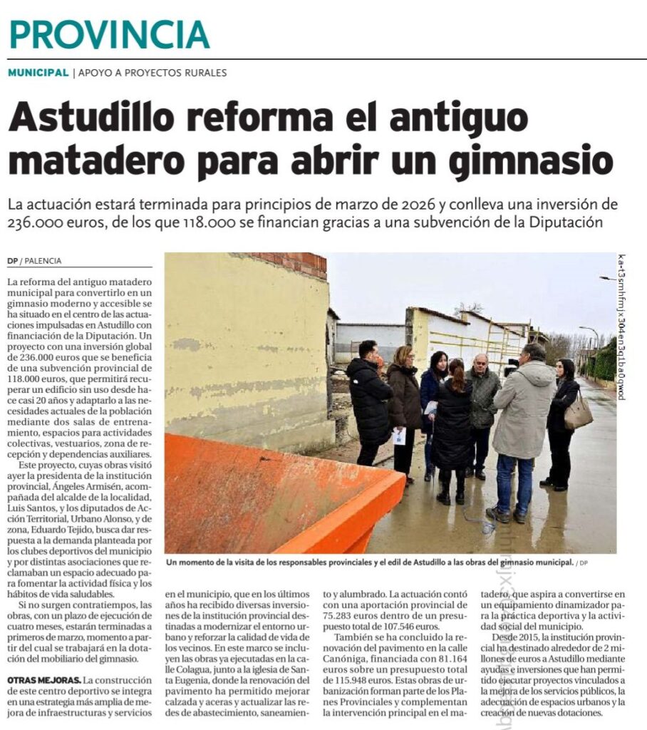La Diputación destina 118.000 euros a esta obra para fomentar el deporte, la igualdad de oportunidades y la vida activa en el medio rural.